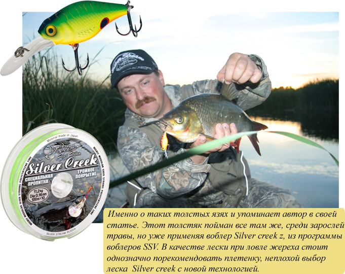 Один из таких устоявшихся стереотипов сложился у меня о ловле жереха. Весь предыдущий опыт, и часто небезуспешный, ловли этой интереснейшей в спортивном отношении рыбы говорил мне о следующем: ловить жереха нужно на открытых водных пространствах с быстрым течением. Лучше, если это будет перекат или мелководная коса, возможно, у кромки камыша или травы, возможно, в районе подводного коряжника или затопленных деревьев и т.д. Все это, конечно, правда, но не вся. Любители ловли этой стремительной мощной рыбы прекрасно знают, что в разгар лета, особенно в ясные солнечные дни, жерех становится крайне осторожным и привередливым. Поймать его в это время – большая удача даже для опытного спиннингиста, да и то, как правило, это случается в самые ранние утренние часы либо перед самым заходом солнца. Мне же, начиная с этого сезона, удалось научиться ловить жереха целенаправленно и, главное, стабильно в течение всего дня, даже при солнце в зените. Речь, как вы уже догадались, идет о ловле «травяного» жереха (так я его для себя окрестил). Вот этим своим опытом я и хотел бы поделиться с читателями.