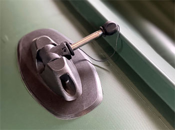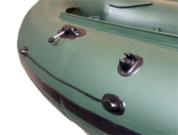 На корме лодки уже установлены закладные крепления транца, который легко установить на лодку. Устанавливается, до надувания лодки. Транец рассчитан для установки