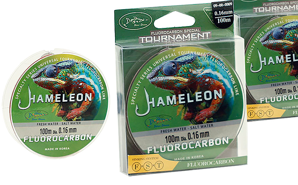 Леска HAMELEON это флюорокарбоновая леска нового поколения. Новый метод изготовления увеличивает плотность лески, что приводит к увеличению прочности и износостойкости. Применен новый метод окраски, при котором леска обладает свойствами хамелеона, что позволяет без труда отслеживать её рыболову при полной невидимости для рыбы. Флюорокарбон позволяет сохранять ей прочность, даже при повреждении или износе поверхностного слоя.