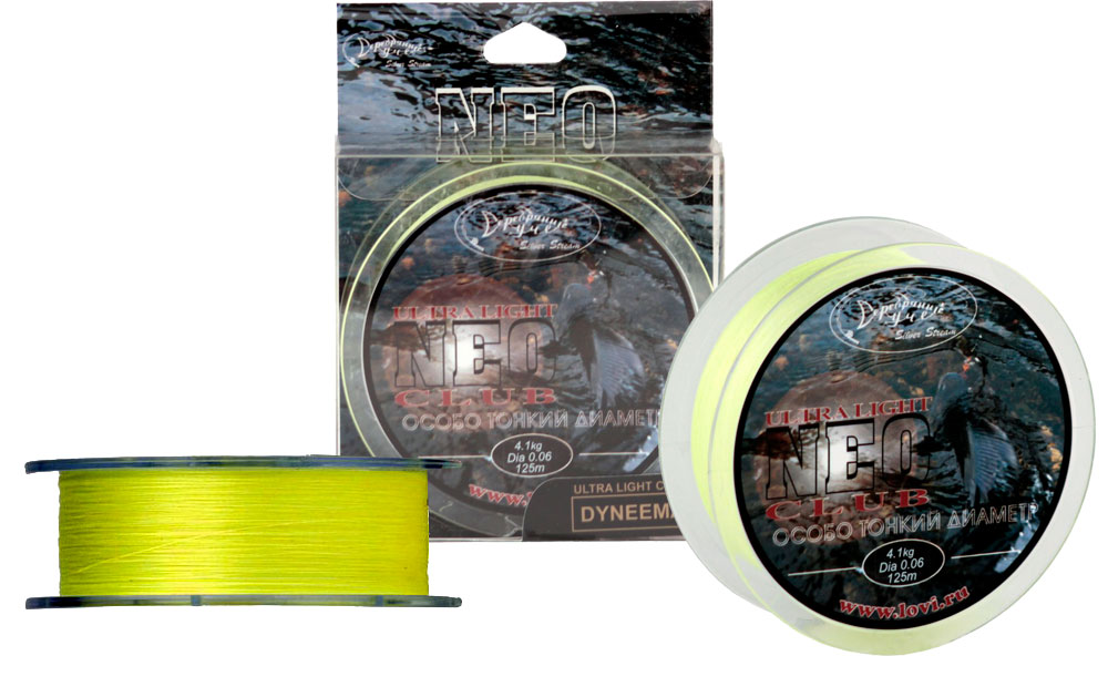Плетеная леска NEO LINE Специализированная плетеная леска нового поколения для ультралайта. Для изготовления этой лески применяются особо тонкие полиэтиленовые волокна повышенной прочности. Данный материал сплетается из шести волокон, что обеспечивает круглое сечение лески. Волокна обладают высокой износостойкостью, что значительно продлевает срок службы лески. Протестировано и одобрено ведущими спортсменами.