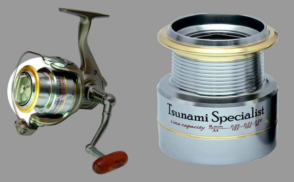 Серия Tsunami Specialist как и одноименная спиннинговая серия это оптимальное соотношение рабочих характеристик и цены. Анализ рынка показывает отсутствие конкурентных программ позволяющих предложить столь высокое качество при предлагаемой цене и высокой розничной наценке. Серия Tsunami Specialist обладает корпусом из высокомодульного углекомпозита, что позволяет получить малый вес катушки, при сохранение жесткостных и прочностных характеристик, предъявляемых к корпусу. Серия обладает всеми преимуществами современных катушек, обладает мягким, плавным ходом при солидных тяговых показателях. Механизм катушки обеспечивает применение плетеных лесок из высокомодульного полиэтилена толщиной от 0,09 мм. При проектировании катушек за основу баланса и центровки оси шпули относительно колец были приняты одноименные серии спиннингов. Проведенные в заводской лаборатории испытания и тестирование в течение рыболовного сезона опытных образцов, дали отличные результаты как по прочности и износостойкости, так и по эксплуатационным характеристикам.